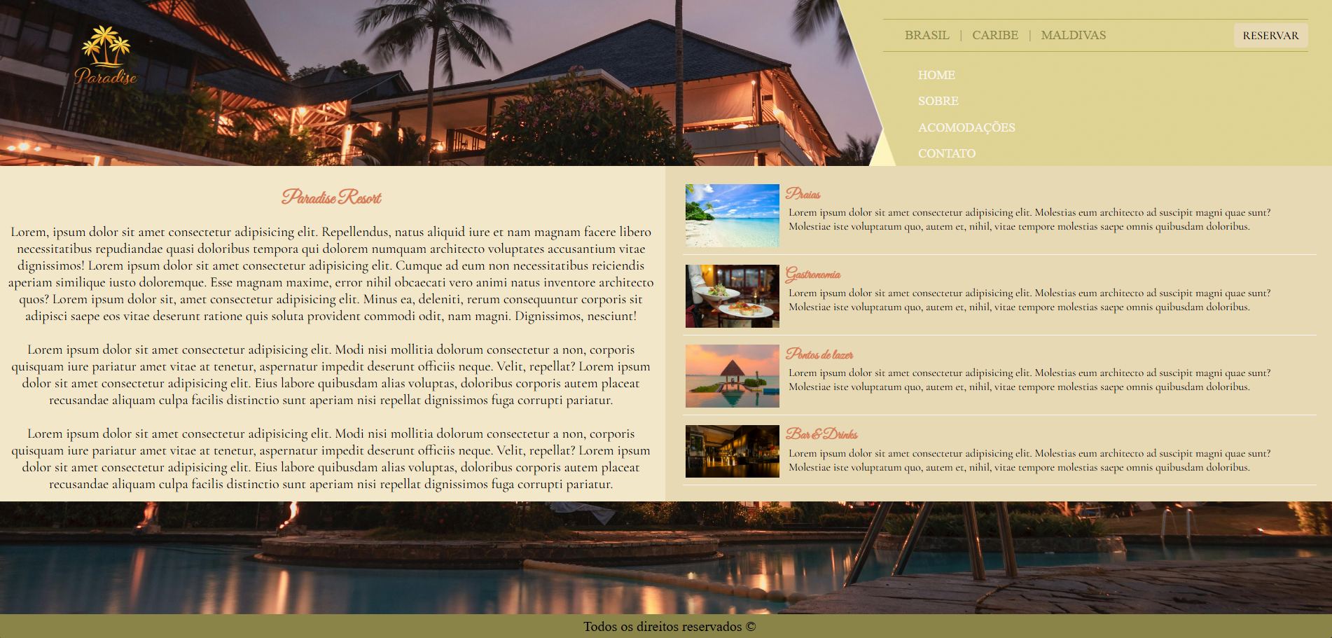 Site baseado em um resort de luxo, feito em um projeto do curso de HTML e CSS