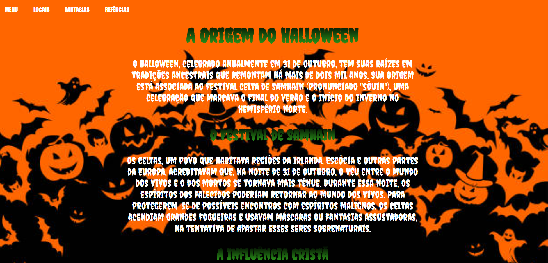 Site com temática Halloween, feito com inspiração na data comemorativa (ainda não