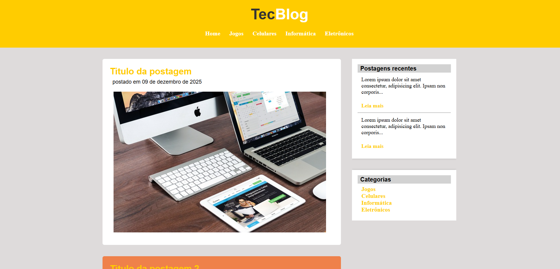 Site de notícias feito com HTML e CSS, desafio curso de HTML e CSS Udemy.